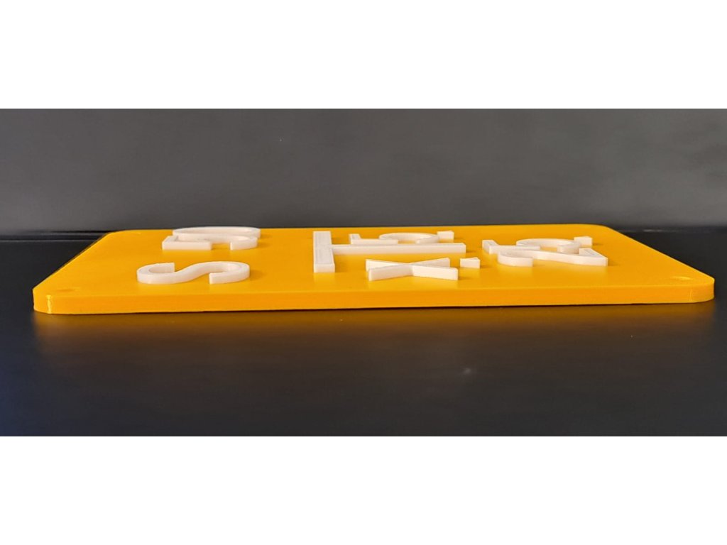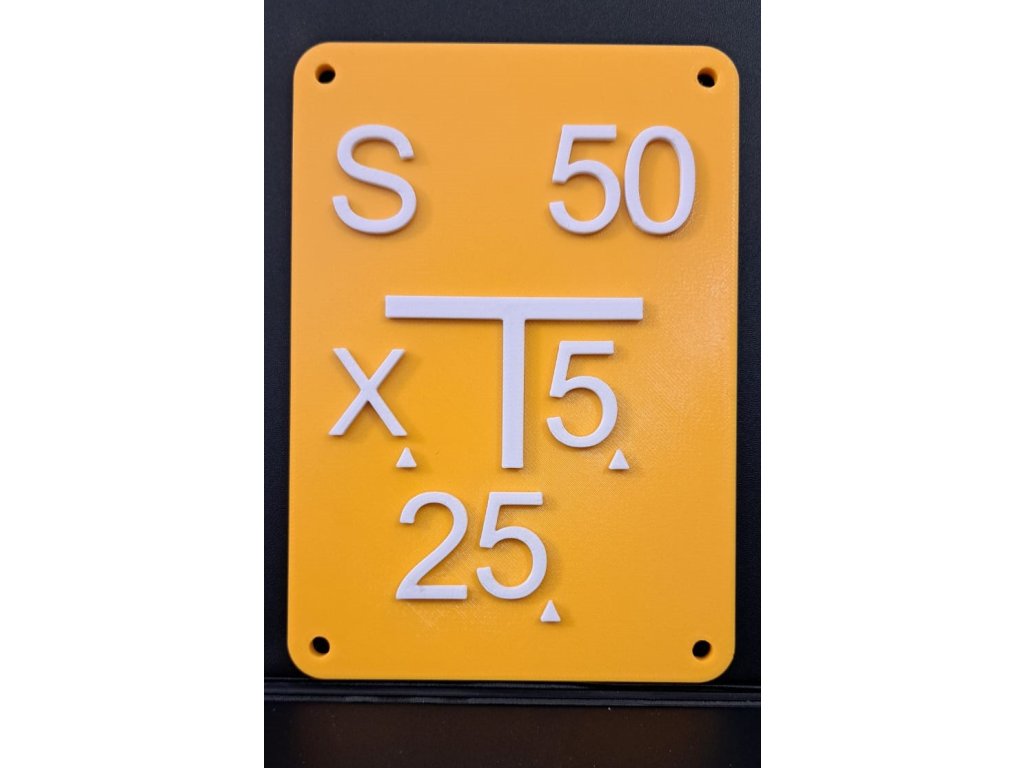 Orientační tabulka o velikosti 15 x 10,5 cm pro označení polohy plynových přípojek dle normy ČSN 75 5025.